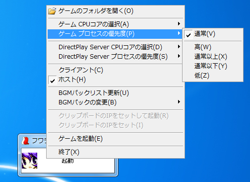 http://forest.watch.impress.co.jp/library/software/sizer/ 「4Kのディスプレイに変えたらひデブの画面が小さくて見難い!しかしひデブにはウィンドウサイズの設定が無い!フルスクリーンだと今度は大き過ぎる!」という場合はこのソフトがお勧めです。 Sizerをクリックする直前にアクティブだったウィンドウを設定した任意のサイズ・位置に変更します。 ゲーム画面をそのまま引き延ばしているので画質はそこそこですが、プレイ上は問題ないかと思われます。 ※注意 通知領域に有るSizerのアイコンは常に表示する様に設定しておきましょう。隠れている状態だと通知領域がリサイズ対象になります。 |